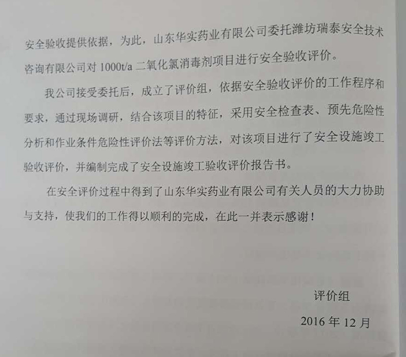 在評(píng)價(jià)過(guò)程中得到了山東華實(shí)藥業(yè)有限公司有關(guān)人員的大力協(xié)助與支持,使我們的工作得以順利的完成,在此一并表示感謝!