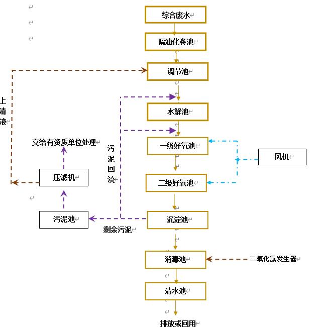 1、本項污水治理工程的設備采購是排出廢水自進入隔油化糞池池進口起至經污水處理裝置消毒池出水出口止。