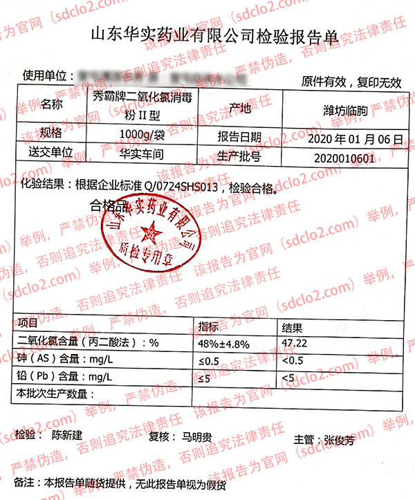 山東華實(shí)藥業(yè)有限公司(以下稱本司)近期發(fā)現(xiàn)某些公司未經(jīng)本司授權(quán),假冒本司產(chǎn)品名義、欺詐客戶銷售“秀霸”、“華實(shí)”牌二氧化氯消毒劑、過硫酸氫鉀消毒劑,經(jīng)查驗(yàn)均為假貨。