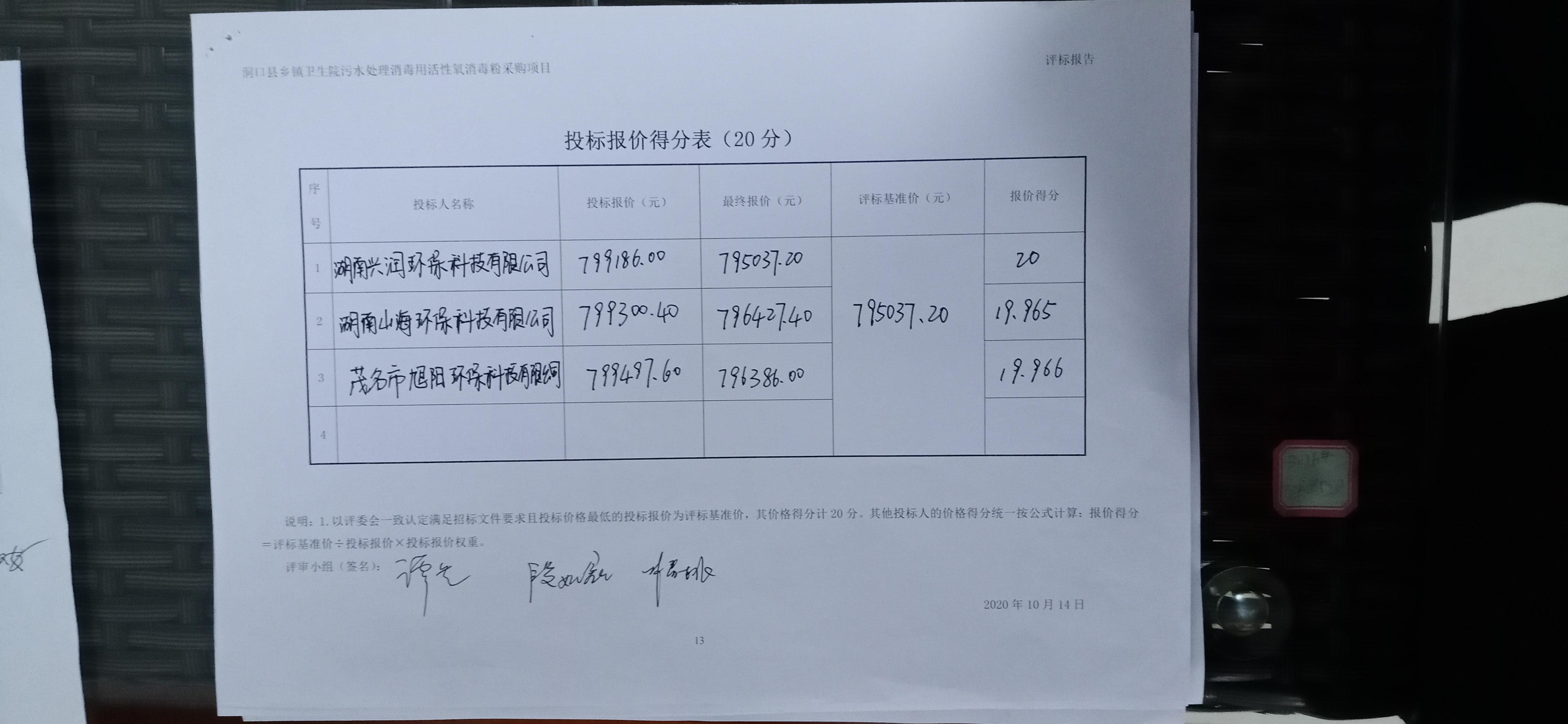 洞口縣衛生健康局(采購人)的洞口縣鄉鎮衛生院污水處理消毒用活性氧消毒粉采購項目(采購項目名稱)競爭性磋商采購項目于2020年10月14日結束,現將成交結果公告如下:
