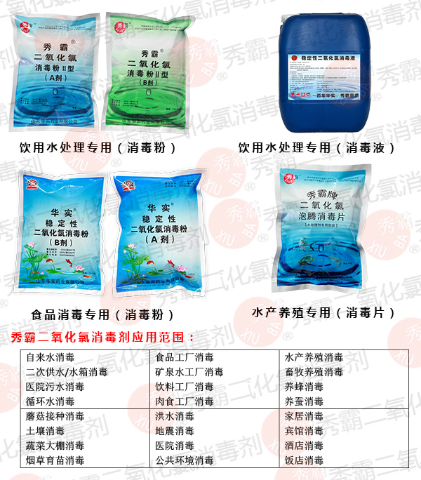 山東華實(shí)藥業(yè)作為一家21年專業(yè)生產(chǎn)二氧化氯消毒劑的廠家,特別提示您,目前市售的二氧化氯產(chǎn)品種類非常多,從包裝上可分為一元、二元二氧化氯產(chǎn)品,從劑型上區(qū)分可分為粉劑、片劑、液體,從含量上2%-50%的都有,可以應(yīng)用于大部分消毒領(lǐng)域。