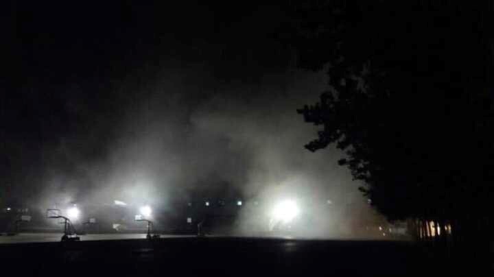 圖為20161010日爆炸當(dāng)晚歷城二中操場濃霧彌漫。