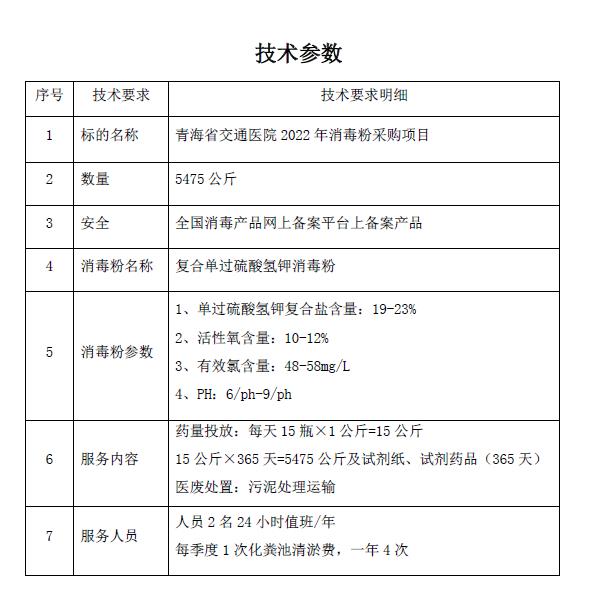 簡要規(guī)格描述:青海省交通醫(yī)院2022年消毒粉采購