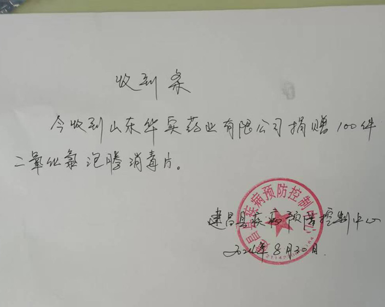 在災(zāi)后重建的關(guān)鍵時(shí)期,為防范洪水過后可能引發(fā)的疫情,我公司作為一家具有社會責(zé)任感的消毒劑生產(chǎn)企業(yè),積極行動,攜手建昌縣衛(wèi)生健康局,向?yàn)?zāi)區(qū)捐贈100箱秀霸二氧化氯消毒泡騰片。這批消毒物資將助力建昌縣做好災(zāi)后防疫工作,保障人民群眾生命安全和身體健康。