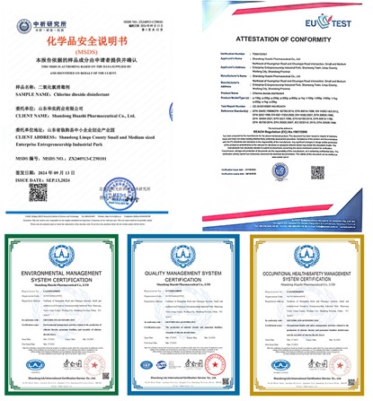 公司MSDSCE證書(shū)、ISO證書(shū)等證件完備,可以為全球外貿(mào)客戶提供以二氧化氯為核心的系統(tǒng)化防疫與凈水解決方案。