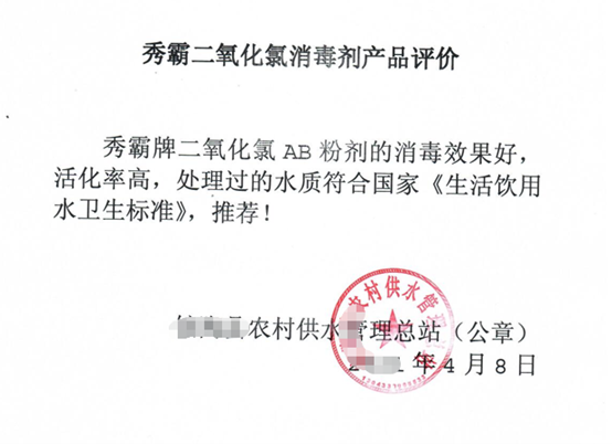 自來(lái)水供水公司出具的真實(shí)評(píng)價(jià)