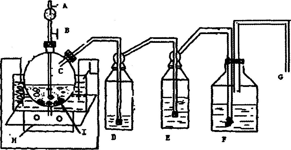 F:氫氧化鈉吸收液G:接水泵H:電熱恒溫水浴鍋I:氯酸鈉+硫酸+蒸餾水