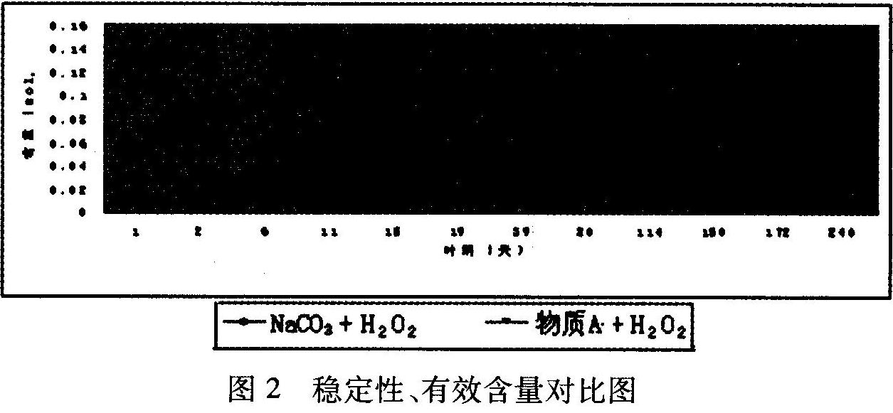 兩種穩(wěn)定性溶液一種為經(jīng)典的Na2C03+ H202,另一種為本實(shí)驗(yàn)所采用的物質(zhì)A+H202,測(cè)定方法用碘量法進(jìn)行,測(cè)定數(shù)據(jù)如下: