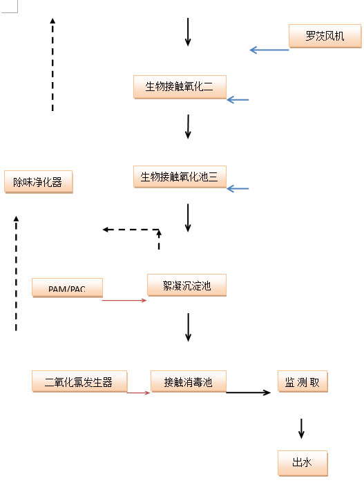 新制1套除味裝置及安裝排風系統,確保污水處理站內空氣污染超標及排放超標,達到環保要求及驗收標準。