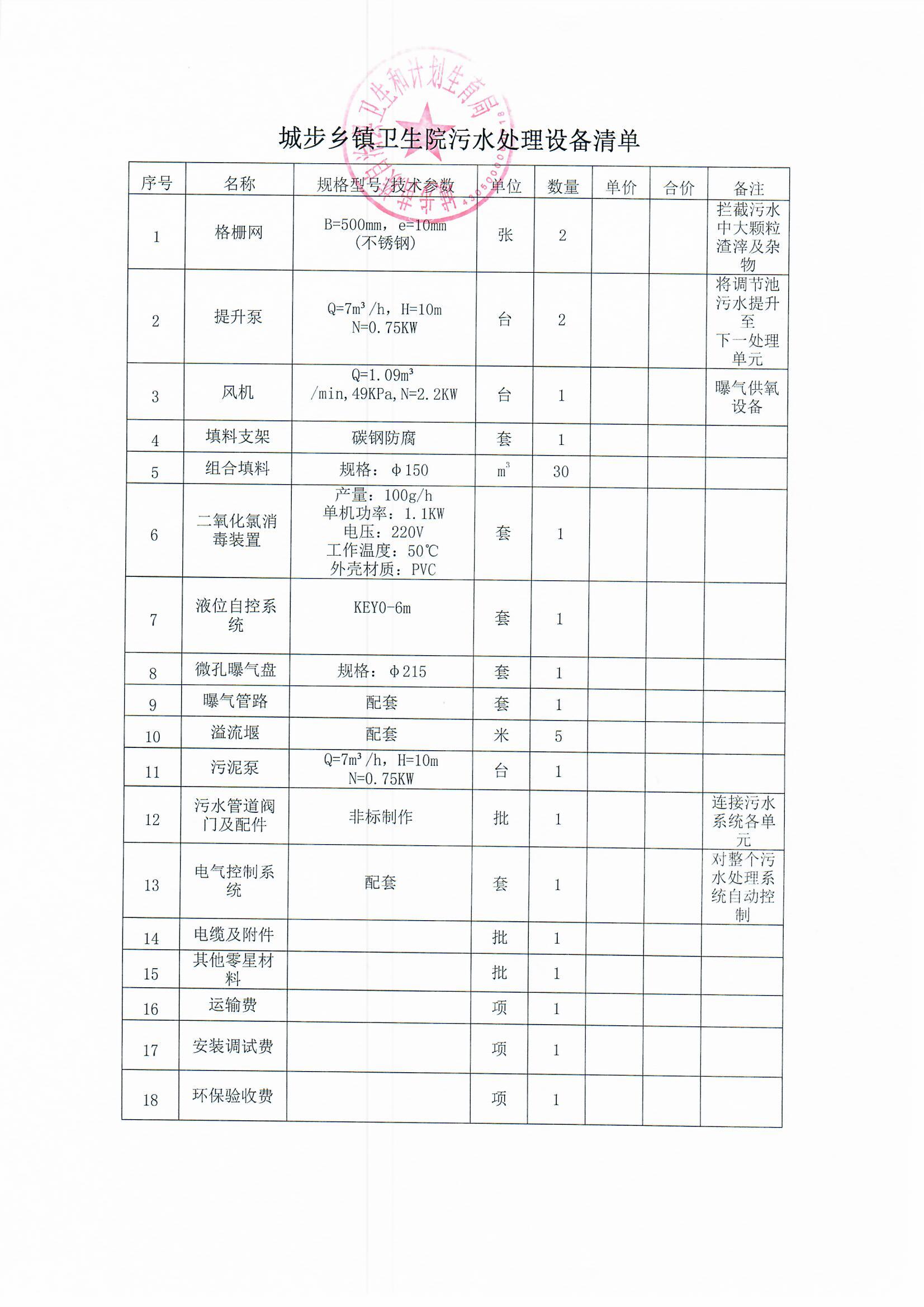 城步鄉鎮衛生院污水處理設備采購設備清單
